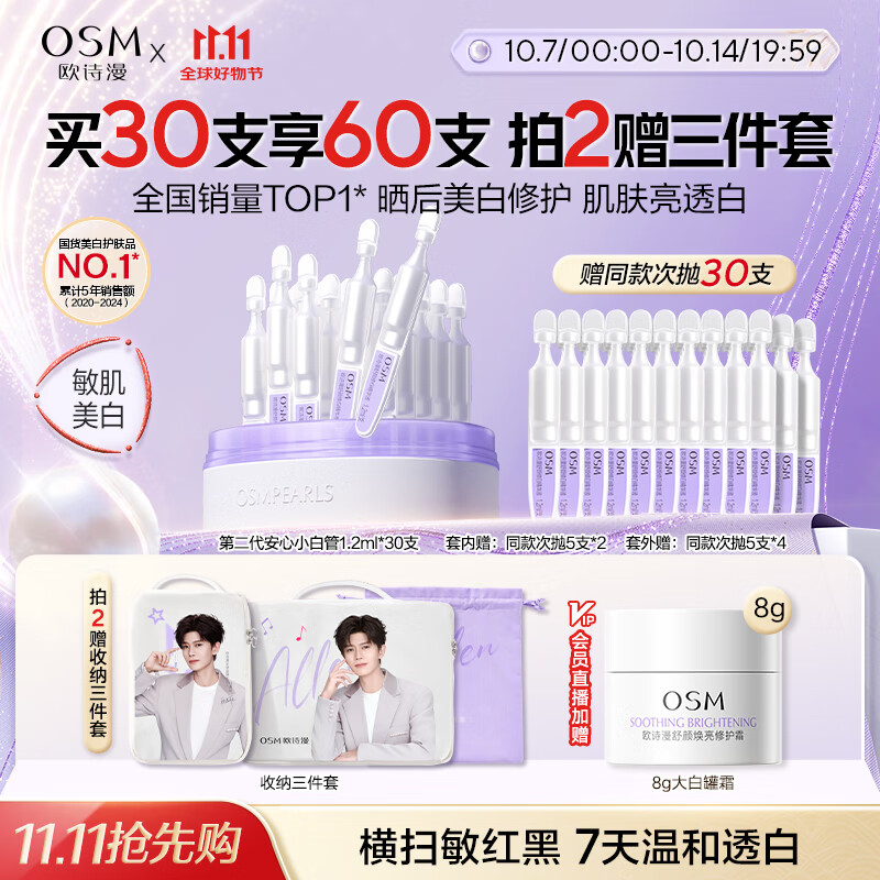 欧诗漫(OSM)舒颜修白次抛精华敏肌晒后美白提亮安心小白管化妆品生日礼物30支