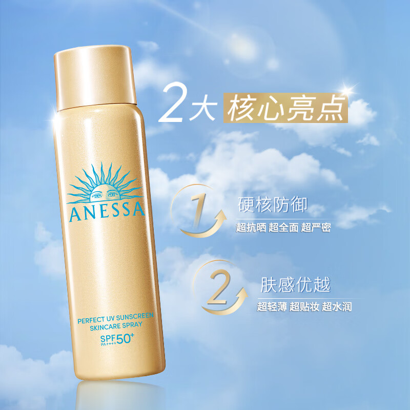 安热沙(Anessa)防晒套装小金瓶防晒霜60ml+防晒喷雾60g防水防汗高倍防晒学生军训