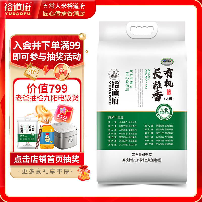 裕道府 有机 长粒香 10斤 东北大米 粳米 5kg 有机 食品