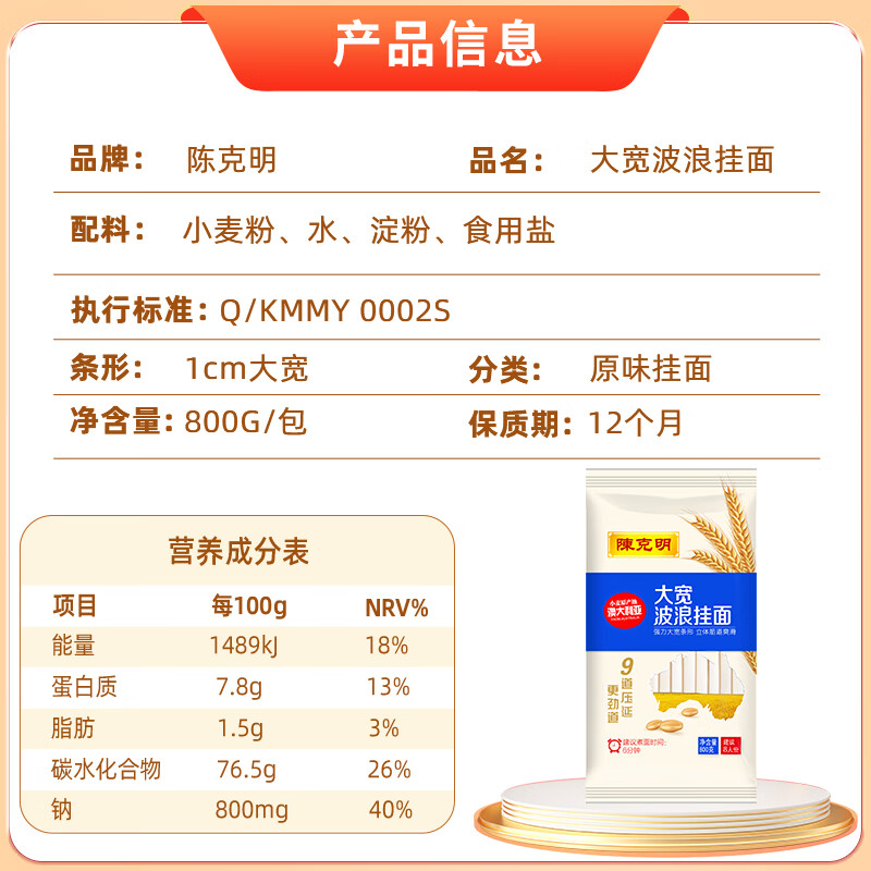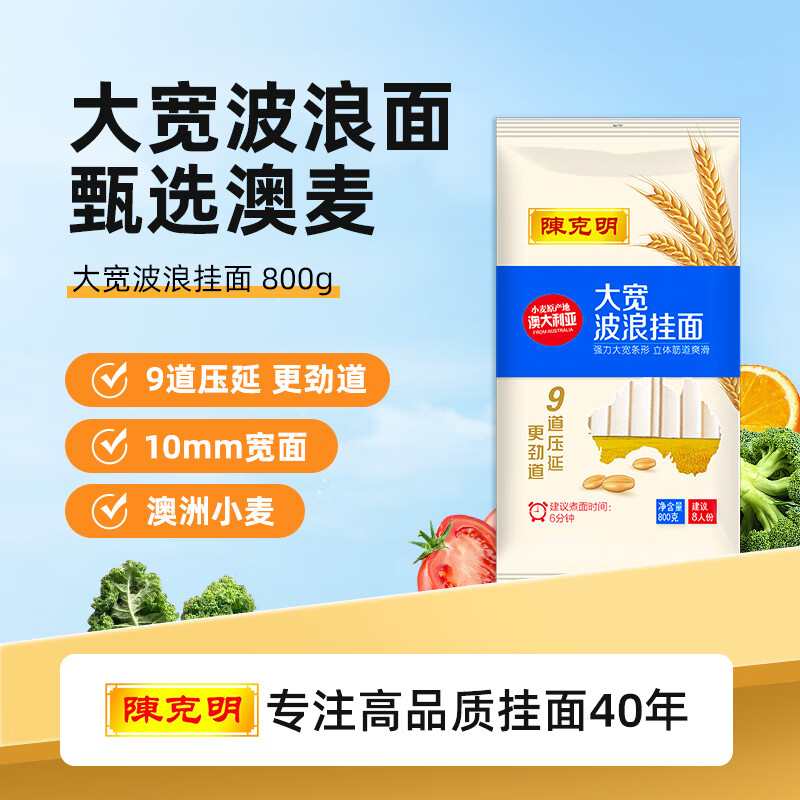 陈克明面条 大宽波浪挂面800g 面条1厘米宽 高品质挂面油泼面刀削面烩面