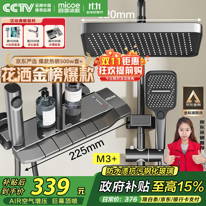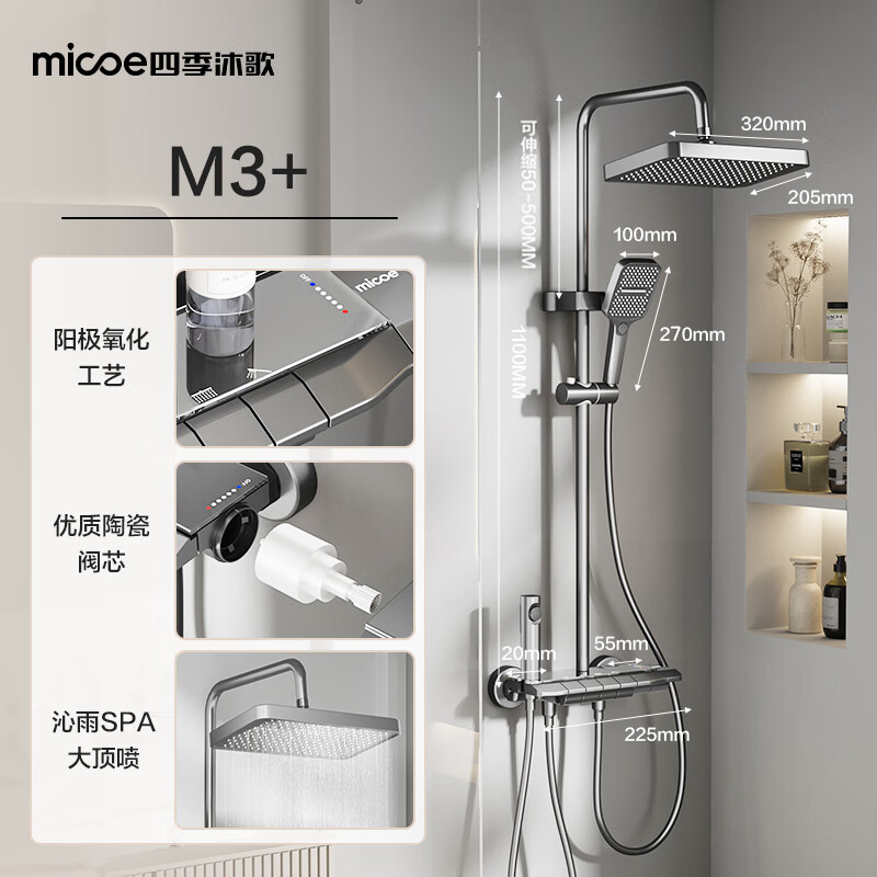 四季沐歌(MICOE)淋浴花洒套装 增压花洒全套枪灰钢琴键多功能花洒喷头浴室淋浴器
