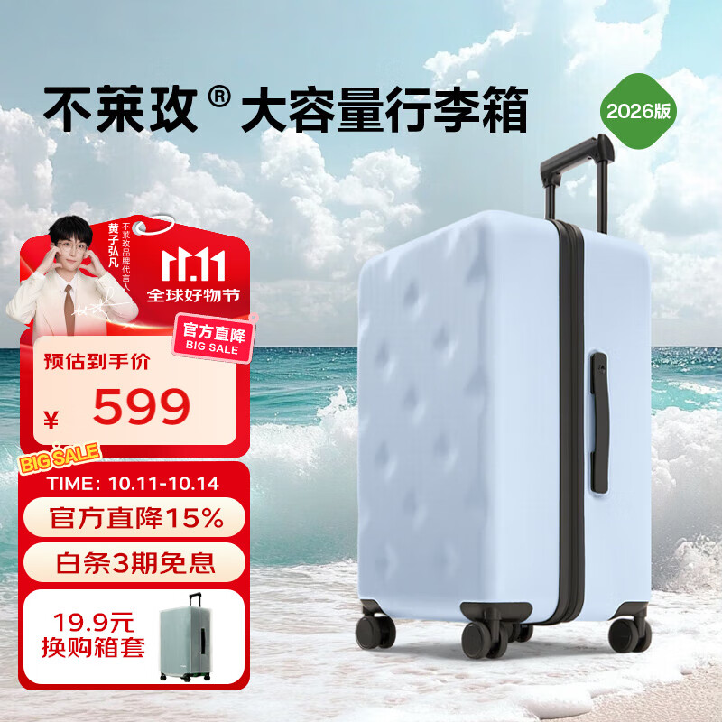 不莱玫行李箱拉杆箱旅行箱大容量女学生男出国托运26英寸密码箱 浅蓝色