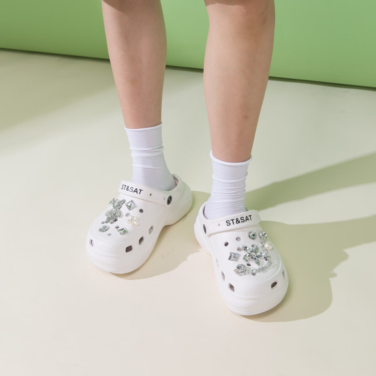 星期六【踩屎感软底】洞洞鞋厚底女鞋包头半拖沙滩凉鞋百搭凉拖鞋女外穿 白色 39