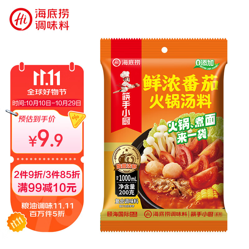 海底捞火锅底料 鲜浓番茄火锅汤料 200g 0添加 火锅煮面 酸甜 一料多用
