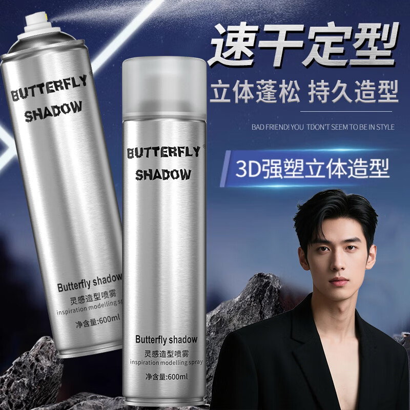 蝶伊清影BUTTERFLY定型喷雾发胶男士头发造型蓬松自然持久干胶定型600ml