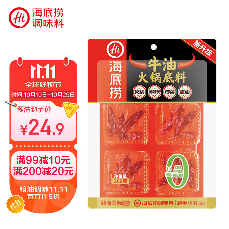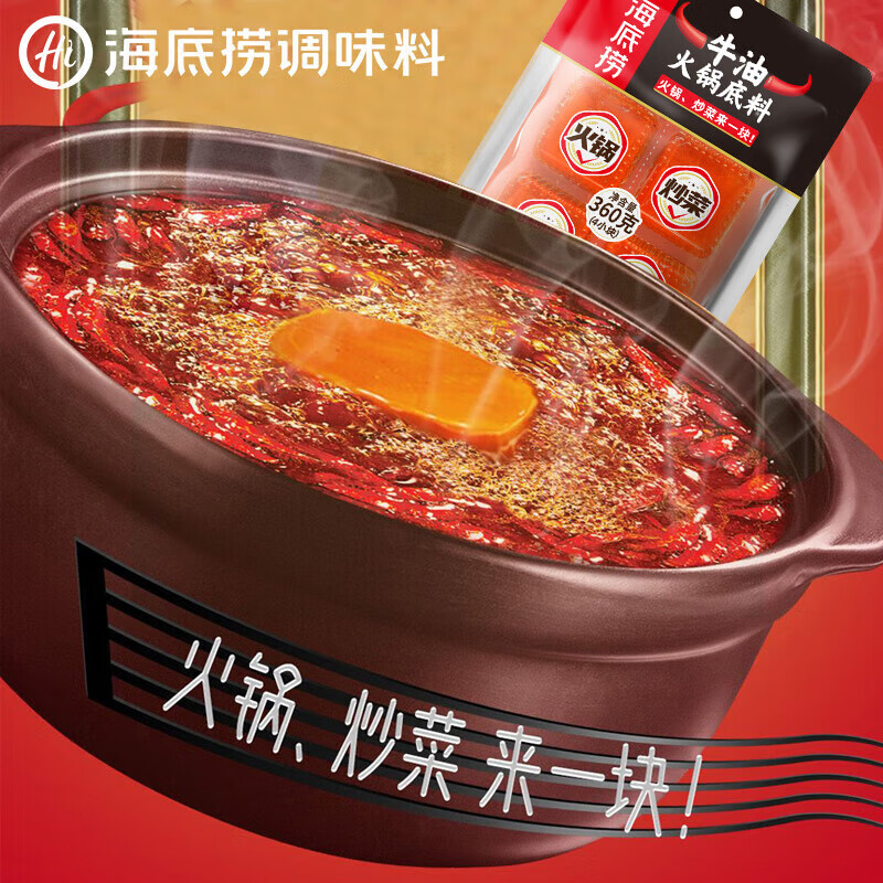海底捞火锅底料0添加牛油小块块状360g(90g*4袋)手工牛油火锅料升级版