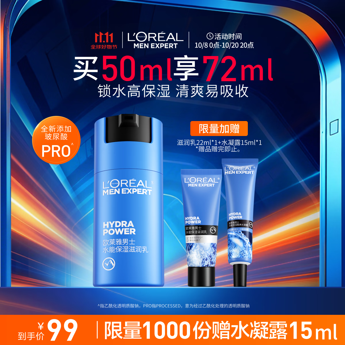 欧莱雅男士水能保湿滋润50ml乳液秋冬补水润肤舒缓干燥护肤品送男友礼物