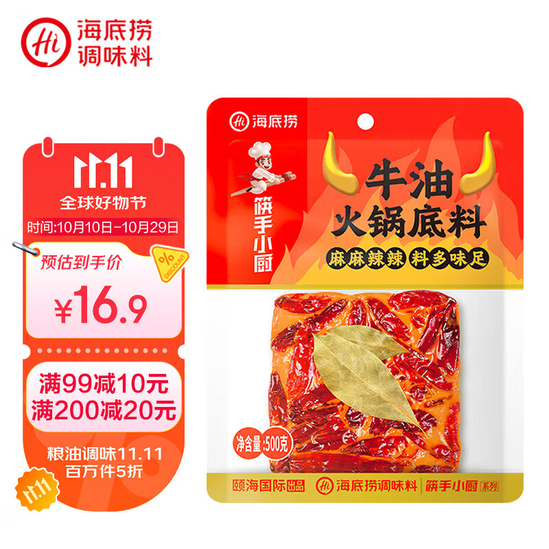 海底捞火锅底料 牛油麻辣火锅500g 麻辣牛油 麻辣烫香锅串串调味料