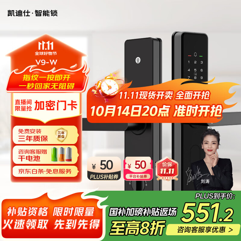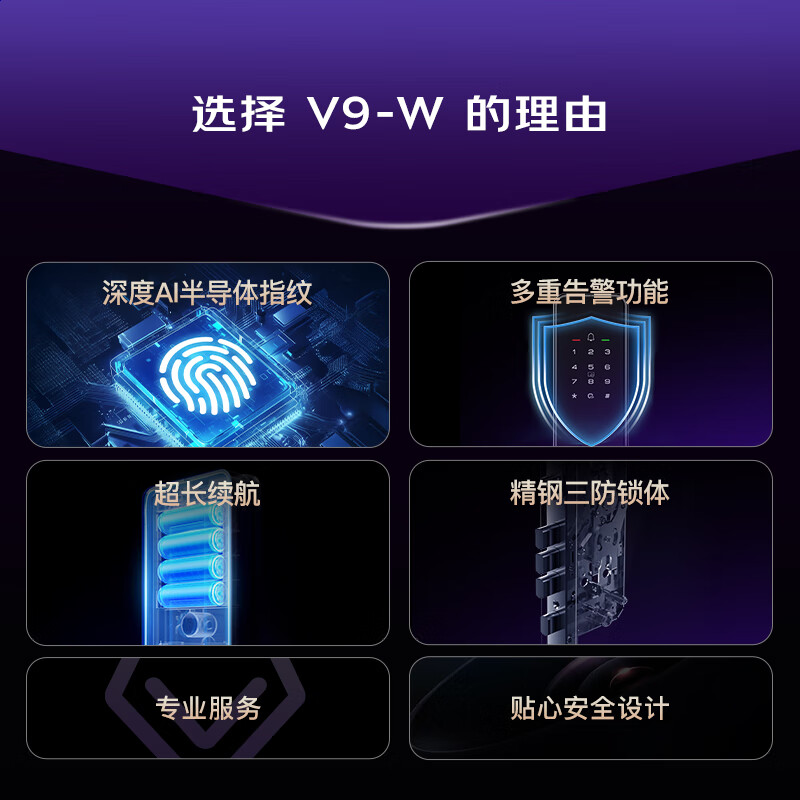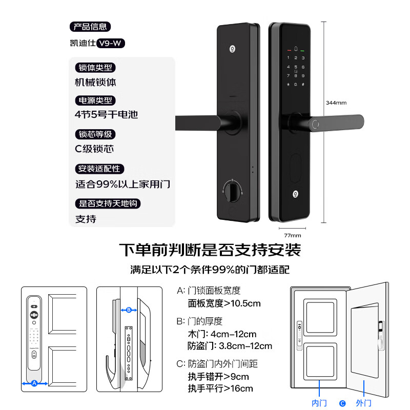 凯迪仕(kaadas)智能门锁 指纹识别 防盗门锁密码锁 入户门电子智能锁 V9-W