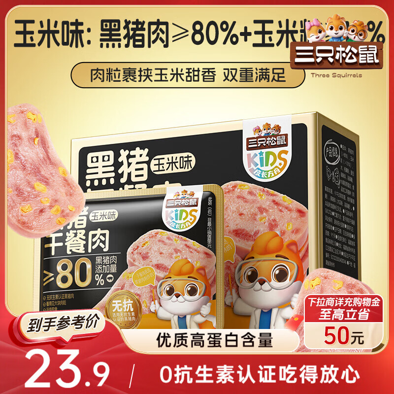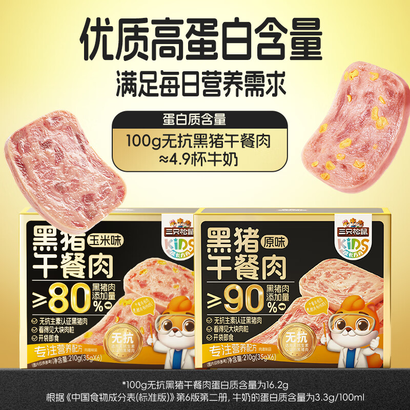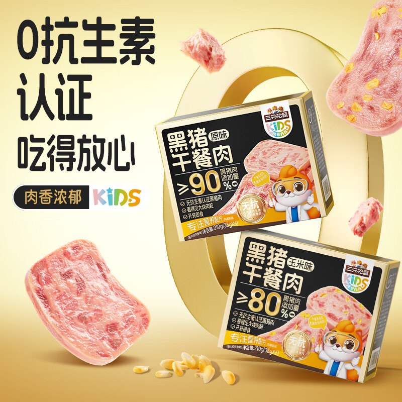 三只松鼠无抗黑猪午餐肉玉米味210g 休闲零食儿童早餐火锅露营代餐即食