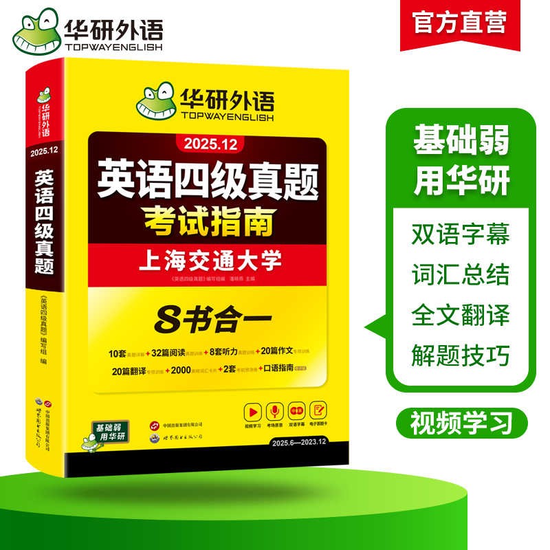 备考2025年12月英语四级真题指南 上海交大试卷八书合一综合版 华研外语英语四级考试含CET4级词汇听力阅读翻译作文预测口试