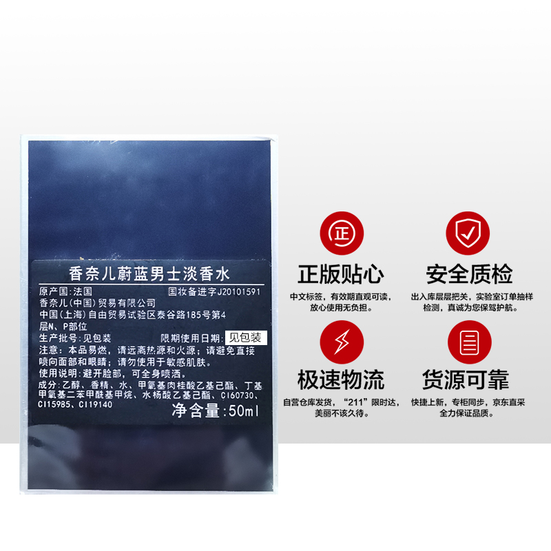 香奈儿(Chanel)蔚蓝男士淡香水(喷装)50ml香水礼盒木质香调生日礼物送男友送老公