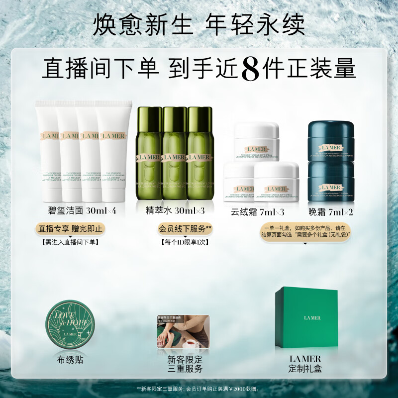海蓝之谜(LA MER)愈颜抗老明星套装(精萃水+面霜+晚霜+精华)护肤品化妆品生日礼物