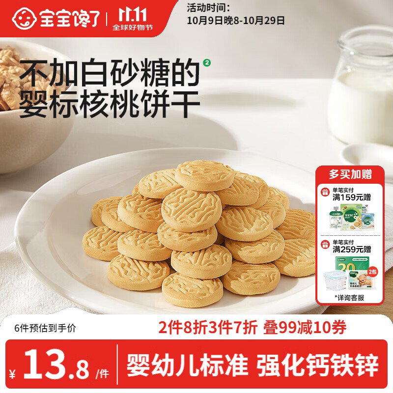 宝宝馋了婴幼儿核桃饼干宝宝儿童零食无添加食盐饼干1-2岁强化钙营养65g