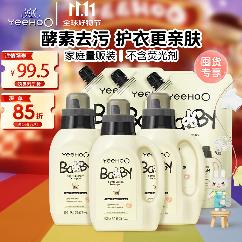 英氏婴儿洗衣液宝宝儿童洗衣液酵素柔护洗衣液(3瓶3袋共7.8斤 )