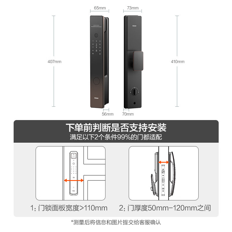 海尔(Haier)智能门锁指纹锁指纹密码锁全自动开关锁电子门锁HFD-P30SE-CA