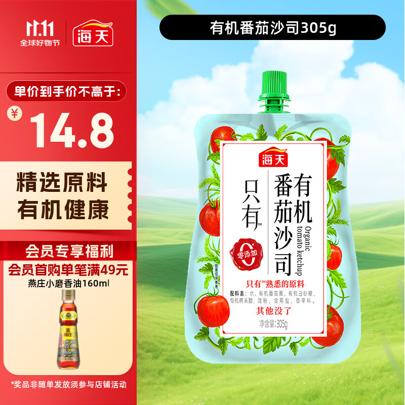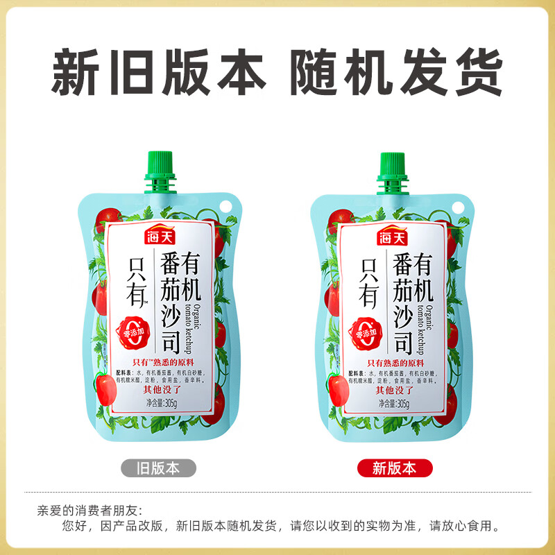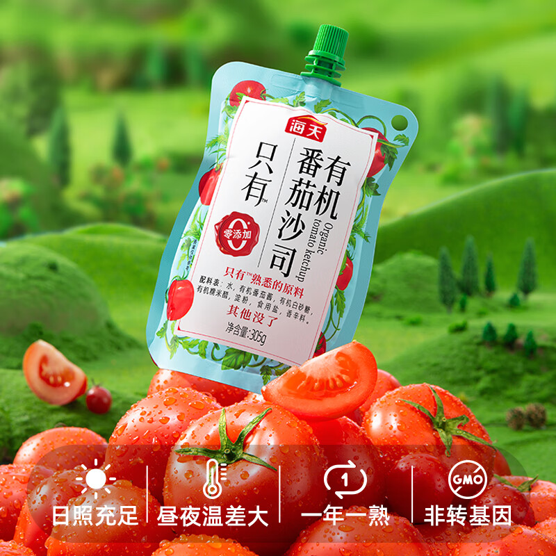 海天 番茄酱 番茄沙司【0添加 有机】305g 调味酱 点蘸调味