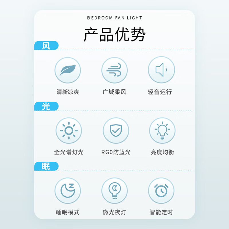 雷士(NVC)枕边风风扇灯吊扇北欧餐厅卧室全光谱1级能效三防一体36瓦包安装