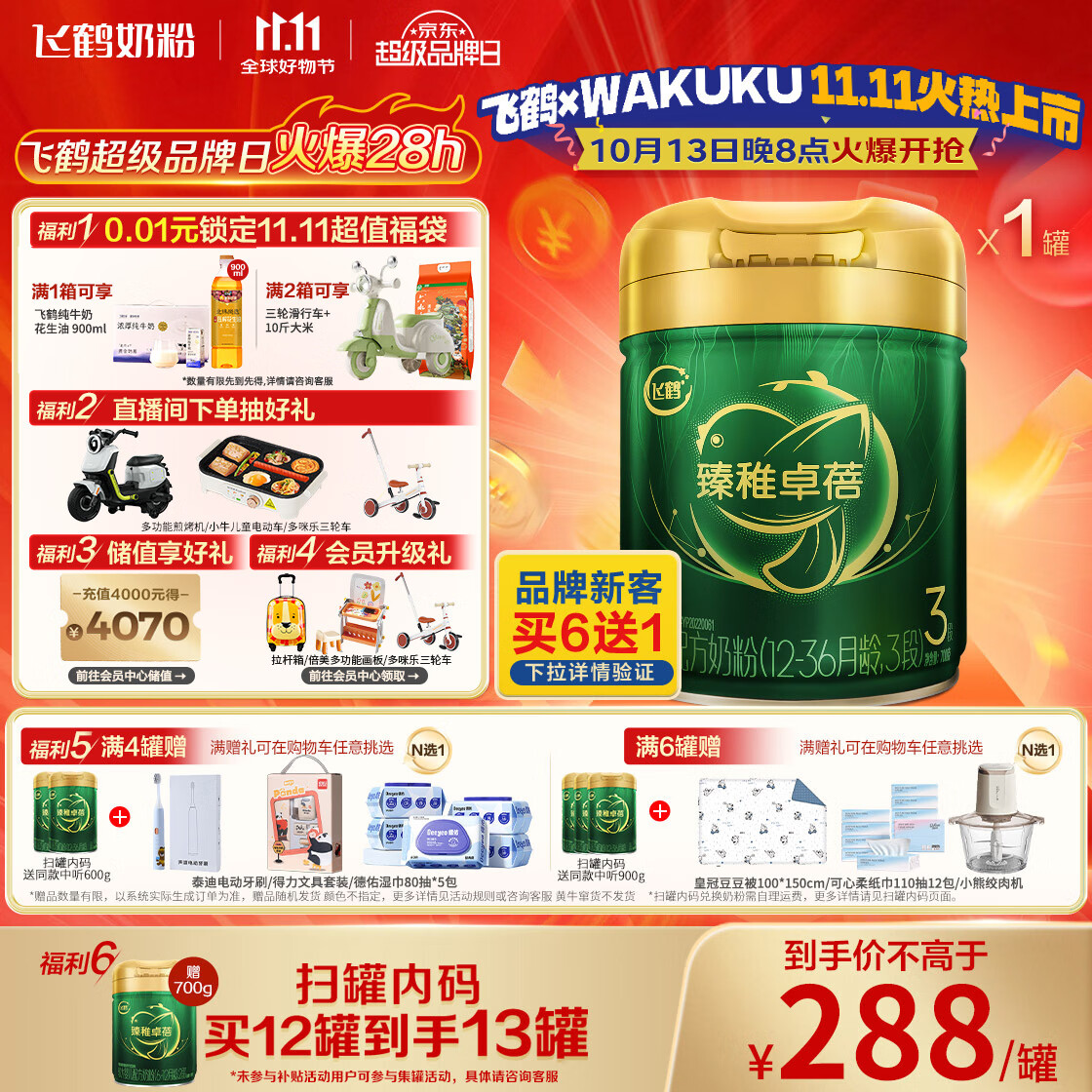 飞鹤臻稚卓蓓有机 幼儿配方奶粉3段(1-3岁)700g 乳铁蛋白 育儿补贴