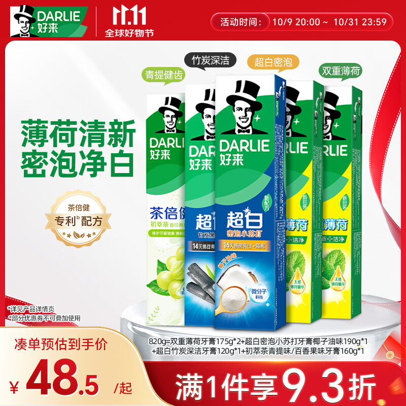 好来(原黑人) 清新美白牙膏套装抗口气净白去渍温和护牙龈5支820g