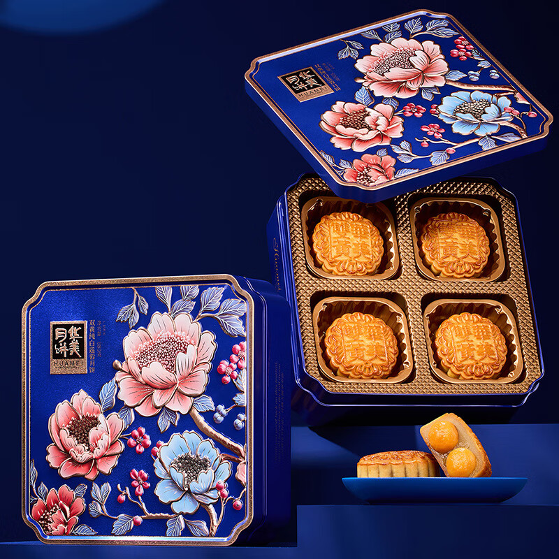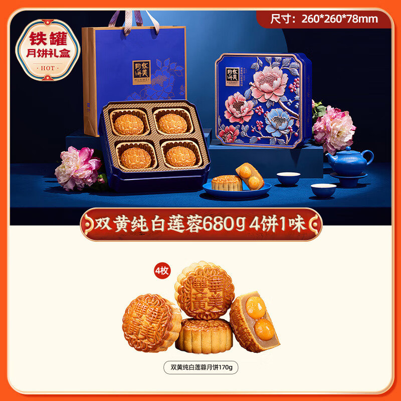 华美 双黄纯白莲蓉月饼礼盒经典广式月饼中秋节送礼团购680g