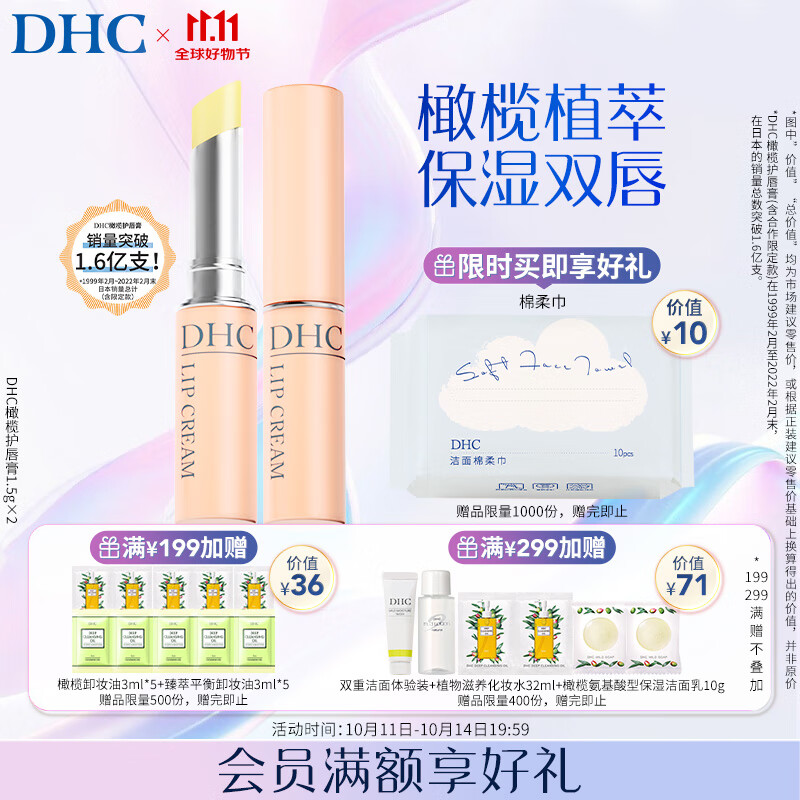 DHC 橄榄护唇膏1.5g×2 蝶翠诗润唇膏保湿滋润抗皱舒缓温和修护女士