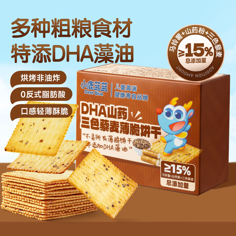 小鹿蓝蓝DHA山药三色藜麦薄脆饼干宝宝零食儿童薄脆粗粮饼干独立包装100g