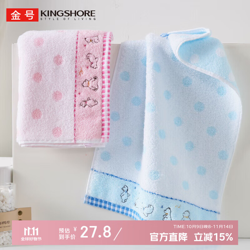 金号洗脸小毛巾A类儿童毛巾纯棉100%洗脸帕小孩毛巾女士面巾2条