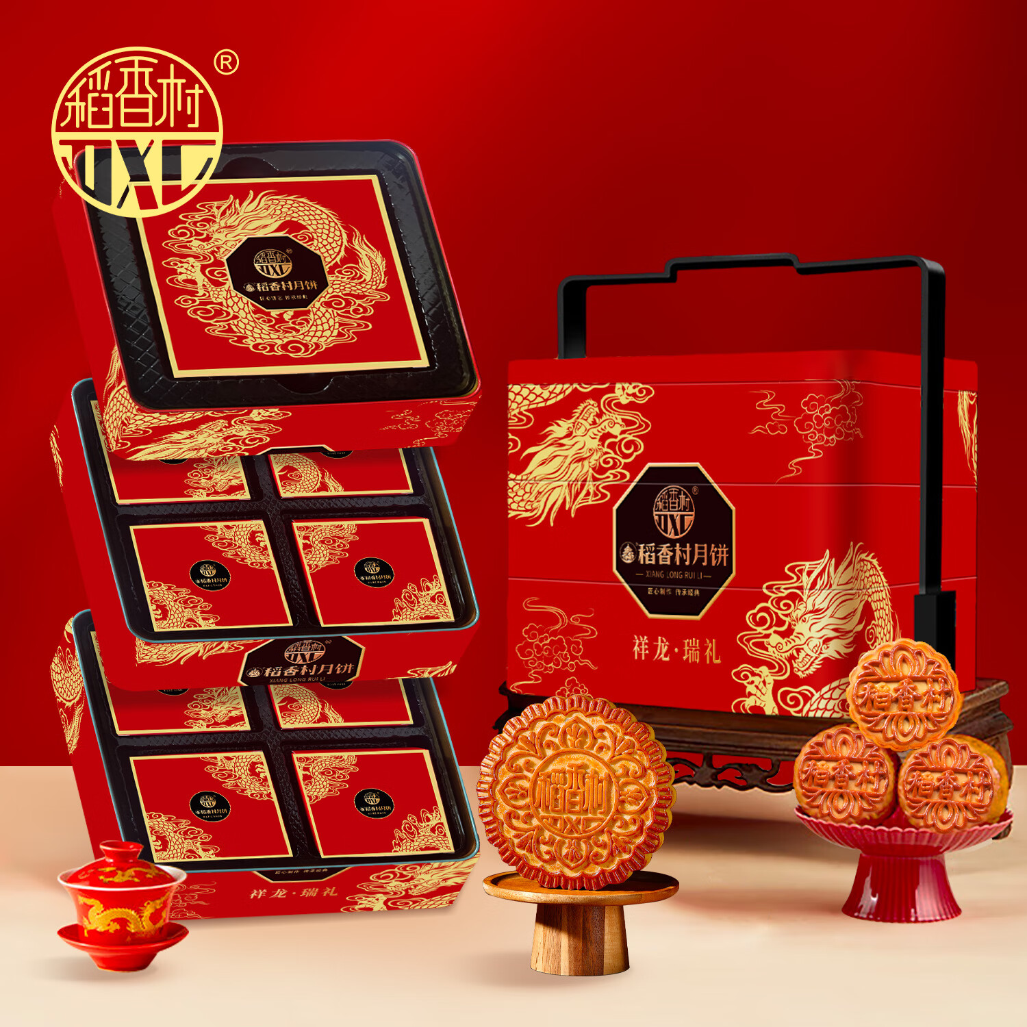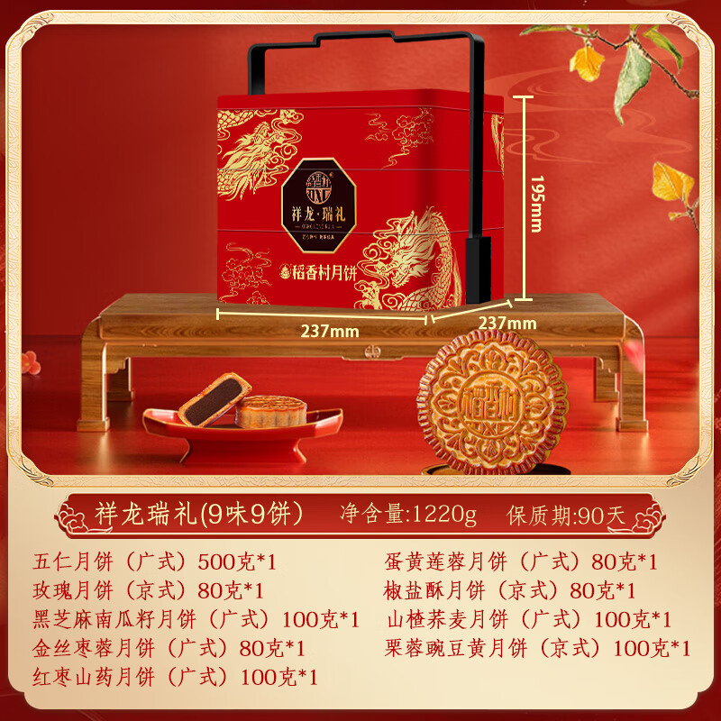 稻香村(DXC)月饼礼盒9味9饼五仁蛋黄莲蓉月饼1220g团购福利三层铁盒 祥龙瑞礼