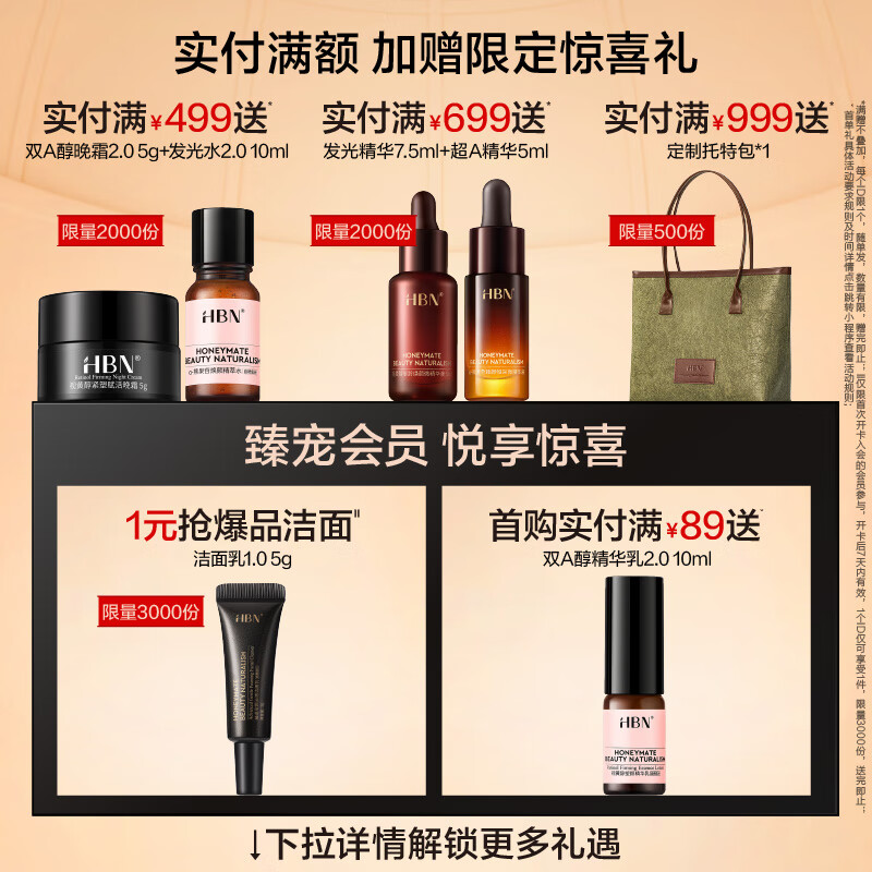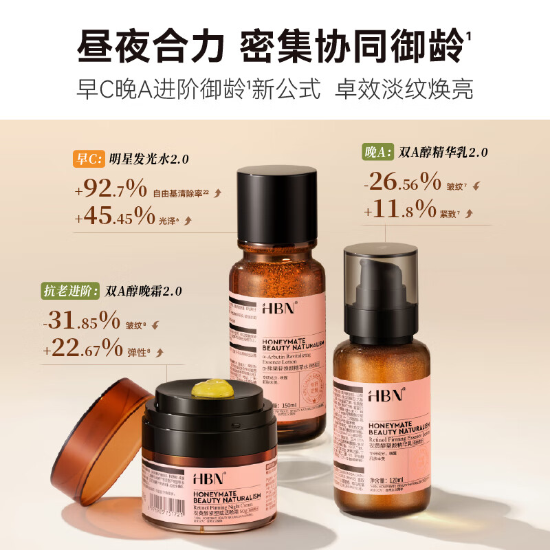 HBN水乳晚霜套装视黄醇A醇早C晚A发光水补水保湿紧致焕亮生日送礼