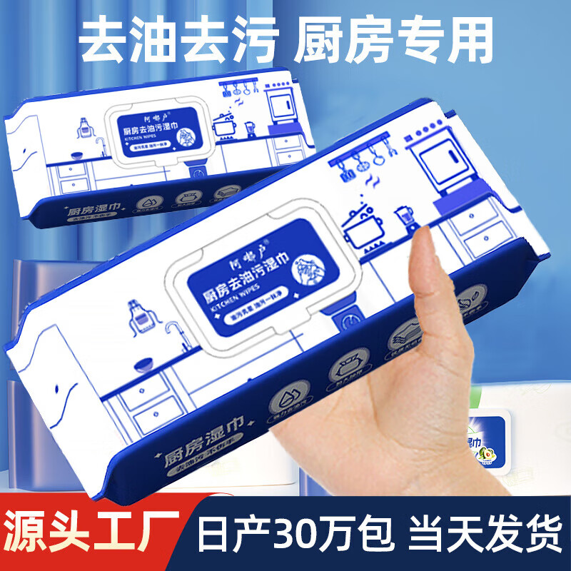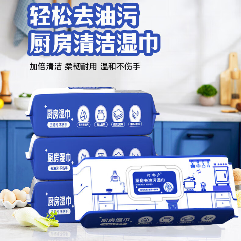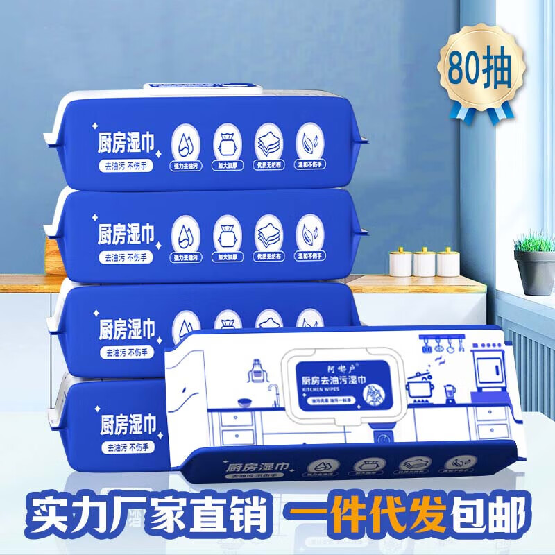 【手臂长】厨房湿巾大包装强力去污油一次性清洁油烟机湿纸巾 油污克星 1层 80抽*1包 一包装