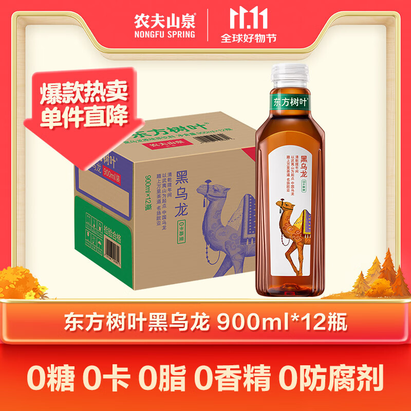 农夫山泉东方树叶黑乌龙茶900ml*12瓶无糖茶饮料0糖0脂0卡整箱装解渴饮品