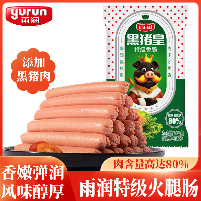 雨润黑猪皇特级香肠 50g*10 黑猪肉火腿肠泡面搭子休闲零食 热门商品