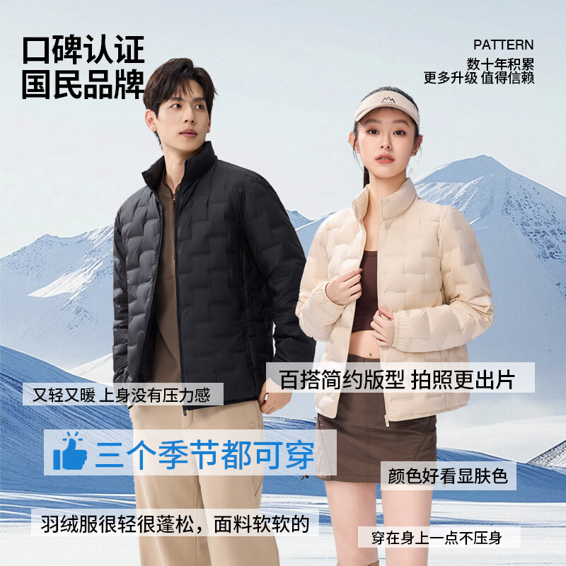 红豆新国标90绒子鸭绒轻薄立领羽绒服情侣男女同款纯色无缝保暖羽绒服 高级灰 L