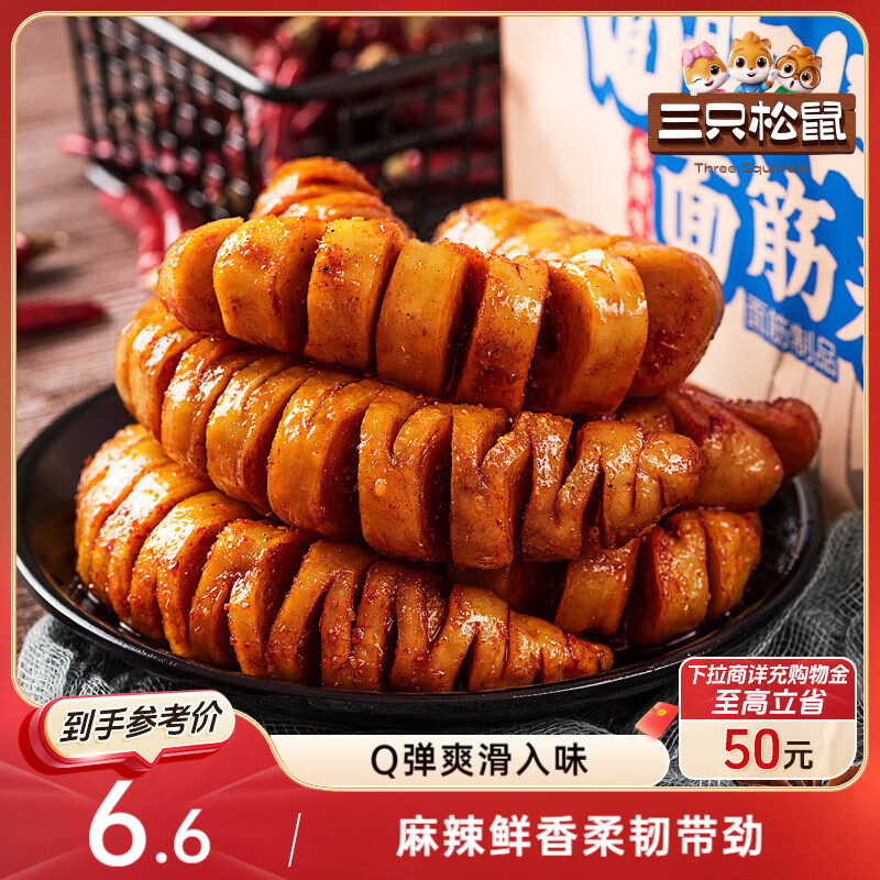 三只松鼠面筋卷香辣味120g/袋 辣条素食烤面筋豆干休闲零食网红小吃