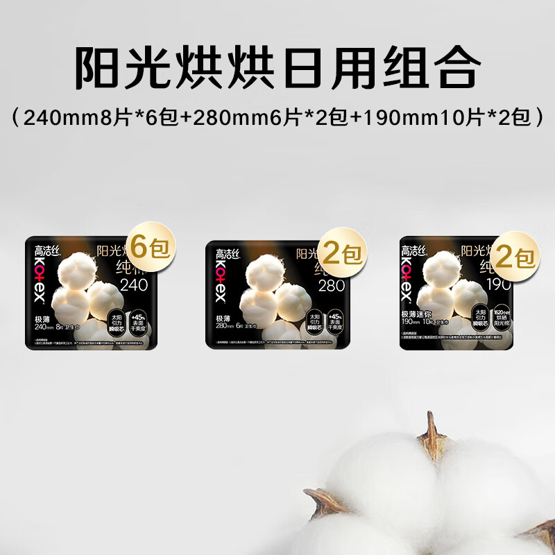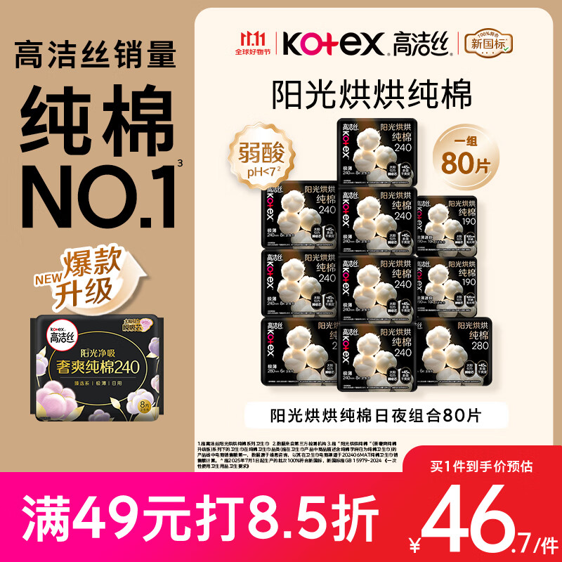 高洁丝【纯棉NO.1】阳光烘烘卫生巾10包80片日夜组合姨妈巾京东自营旗舰
