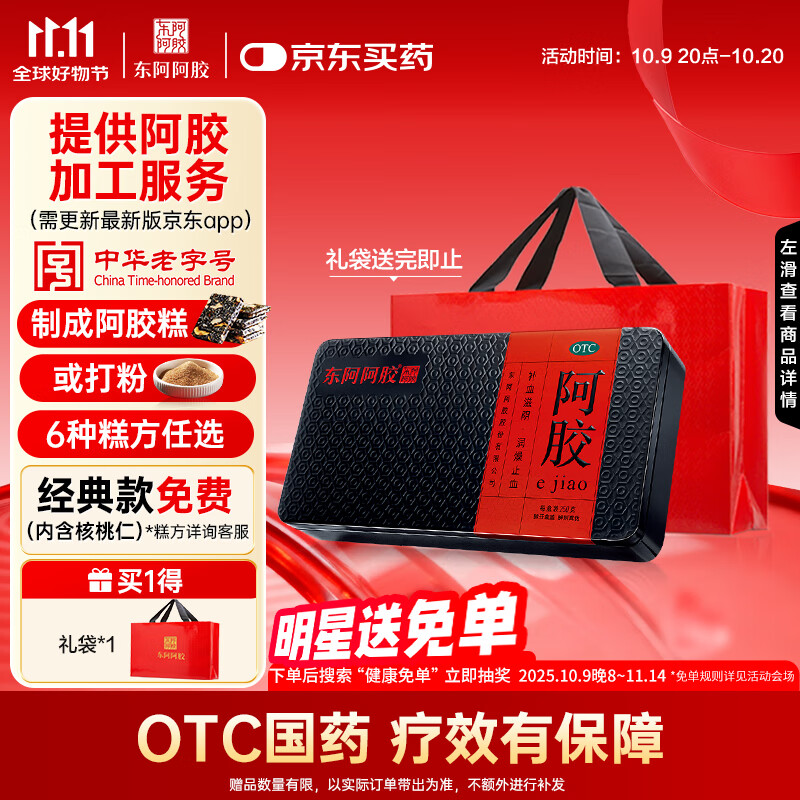 东阿阿胶 阿胶250g 熬胶服务 鲜制阿胶糕 补血滋阴 润燥止血用于血虚萎黄眩晕心悸心烦不眠肺燥咳嗽