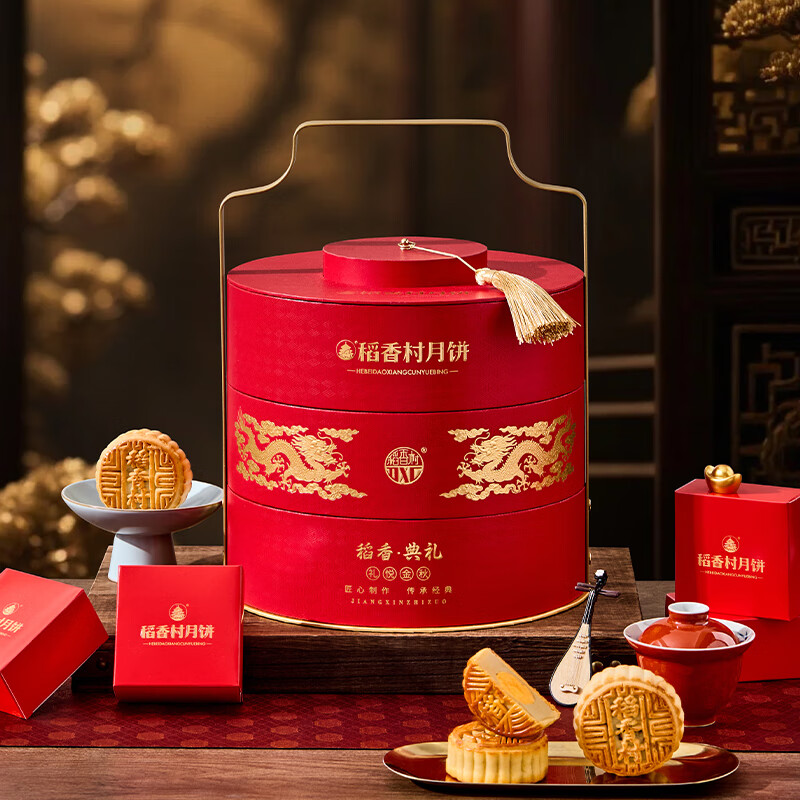 稻香村月饼礼盒中秋礼品团购福利高端三层礼盒稻香典礼1520g