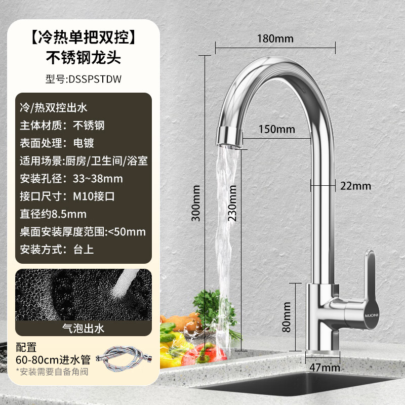 MJONI厨房水龙头 不锈钢冷热双控 洗菜盆洗碗池一体盆水龙头 DSSPSTDW