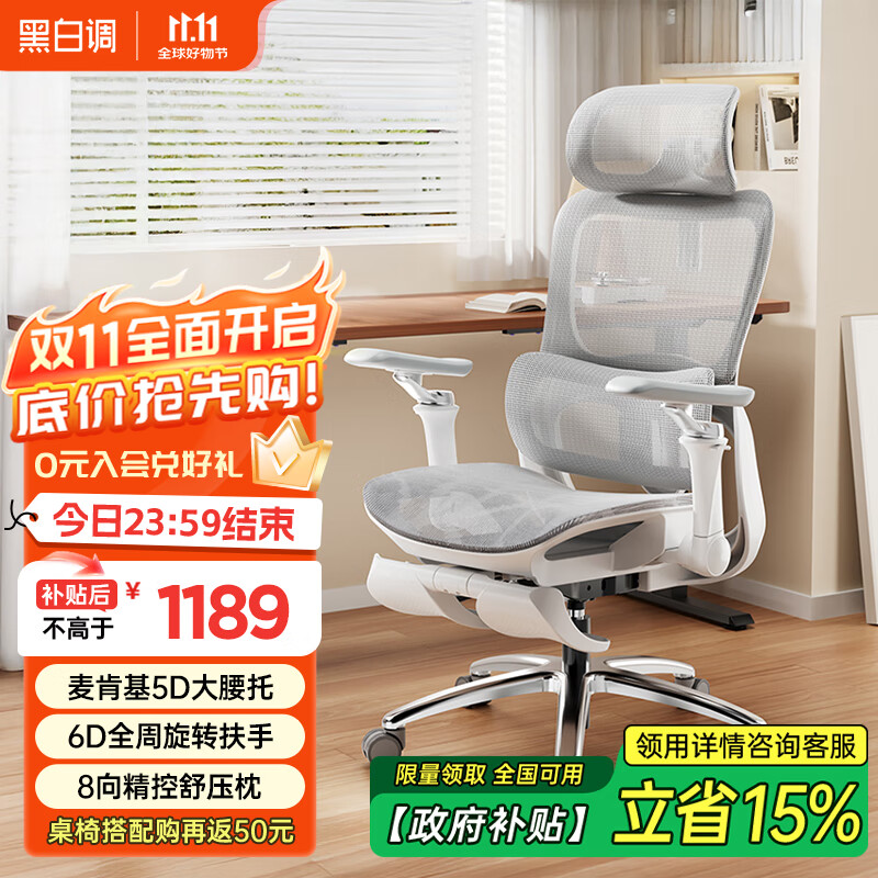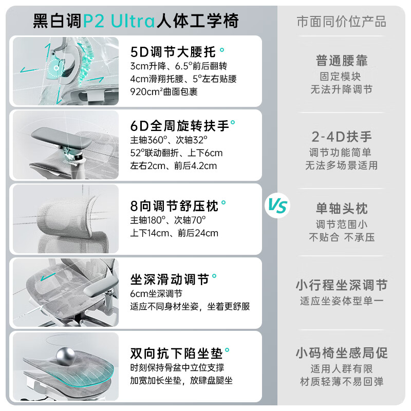 黑白调P2 Ultra人体工学椅电脑椅办公椅人工力学椅学习电竞椅子国家补贴