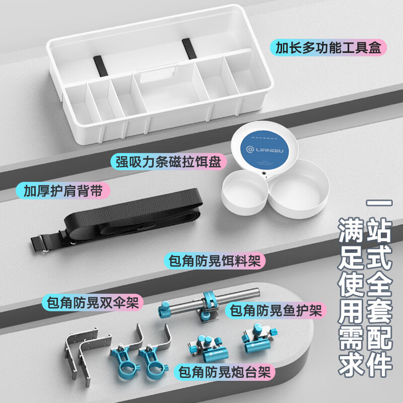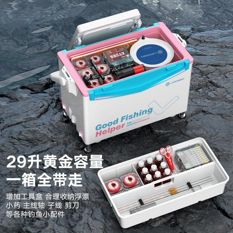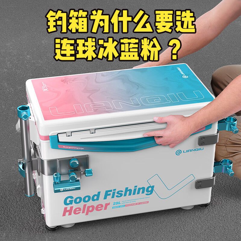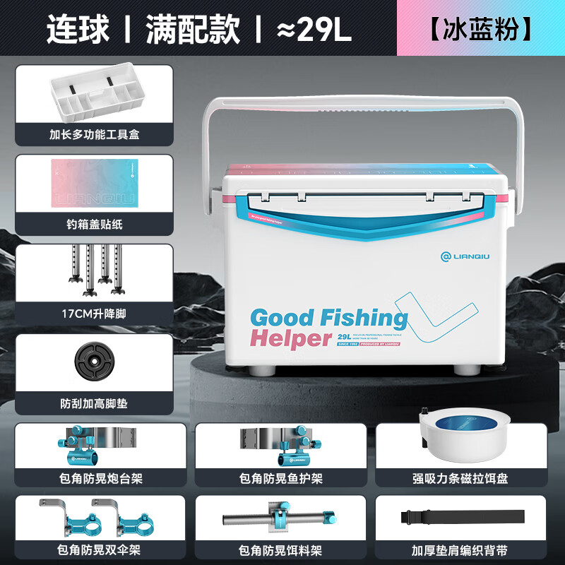 LIANQIU连球钓箱全套2025新款台钓鱼箱多功能超轻量化免安装渔具装备29升 29L 冰蓝粉右手持杆满配款
