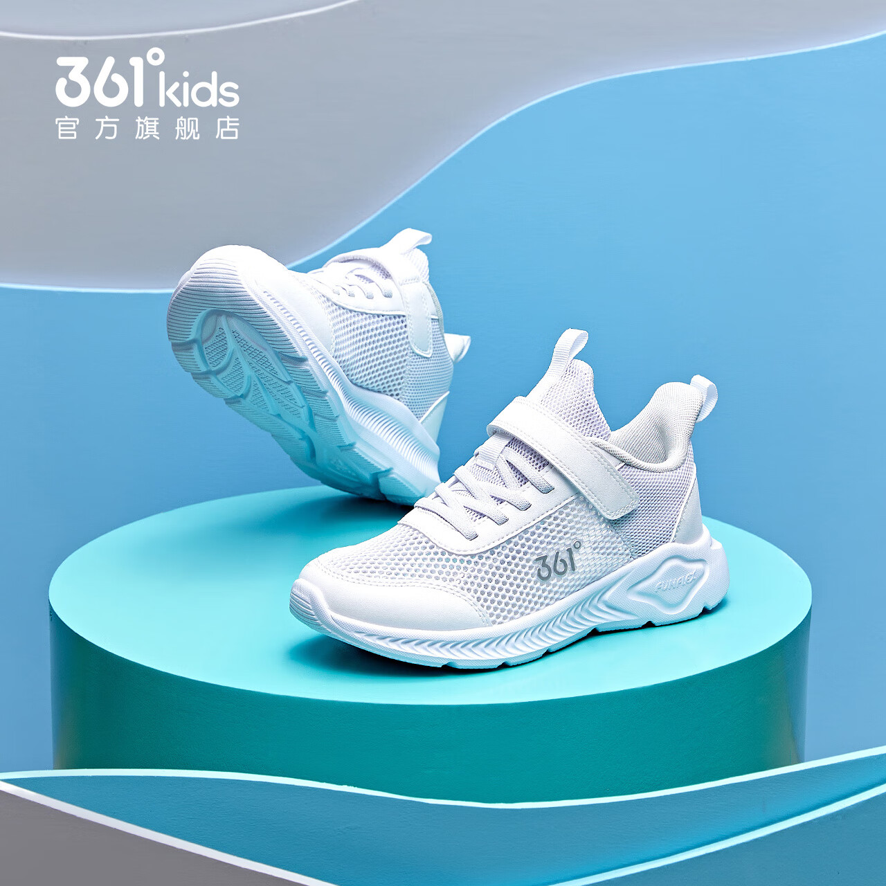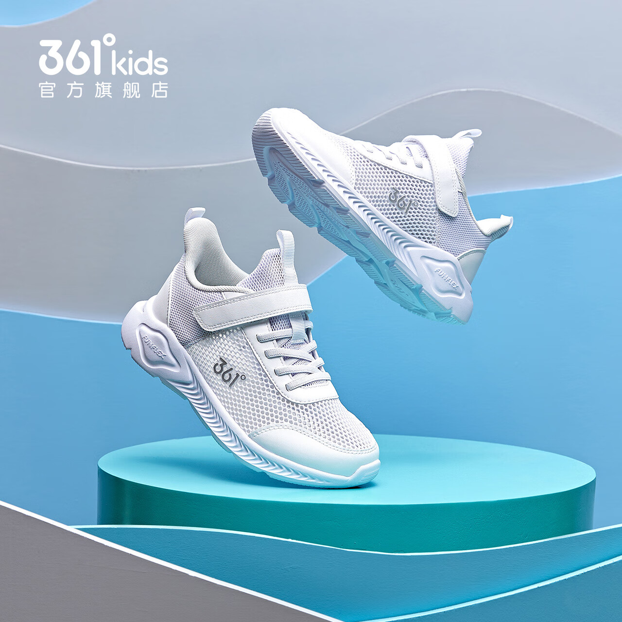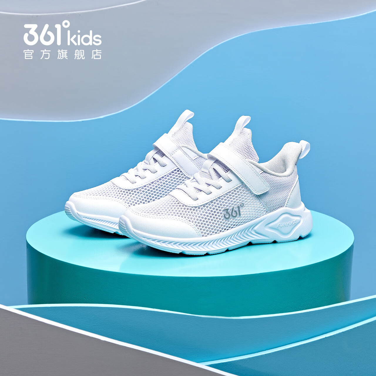 361°儿童运动鞋男童跑鞋夏季大网孔轻便魔术贴女童休闲透气运动鞋 【大网孔】361度白/银色 42