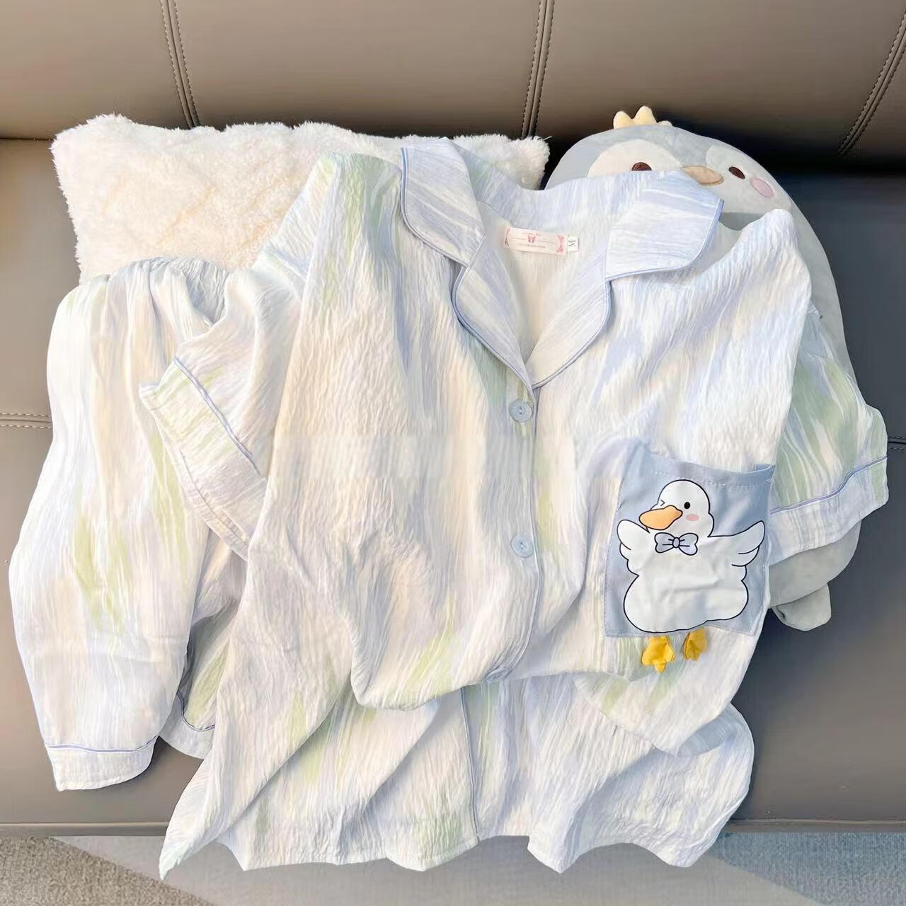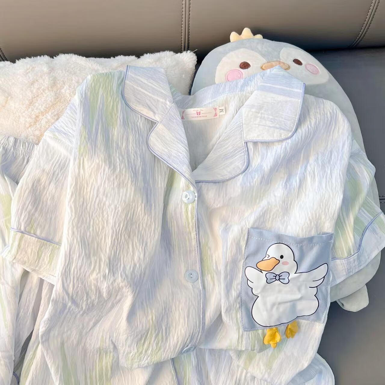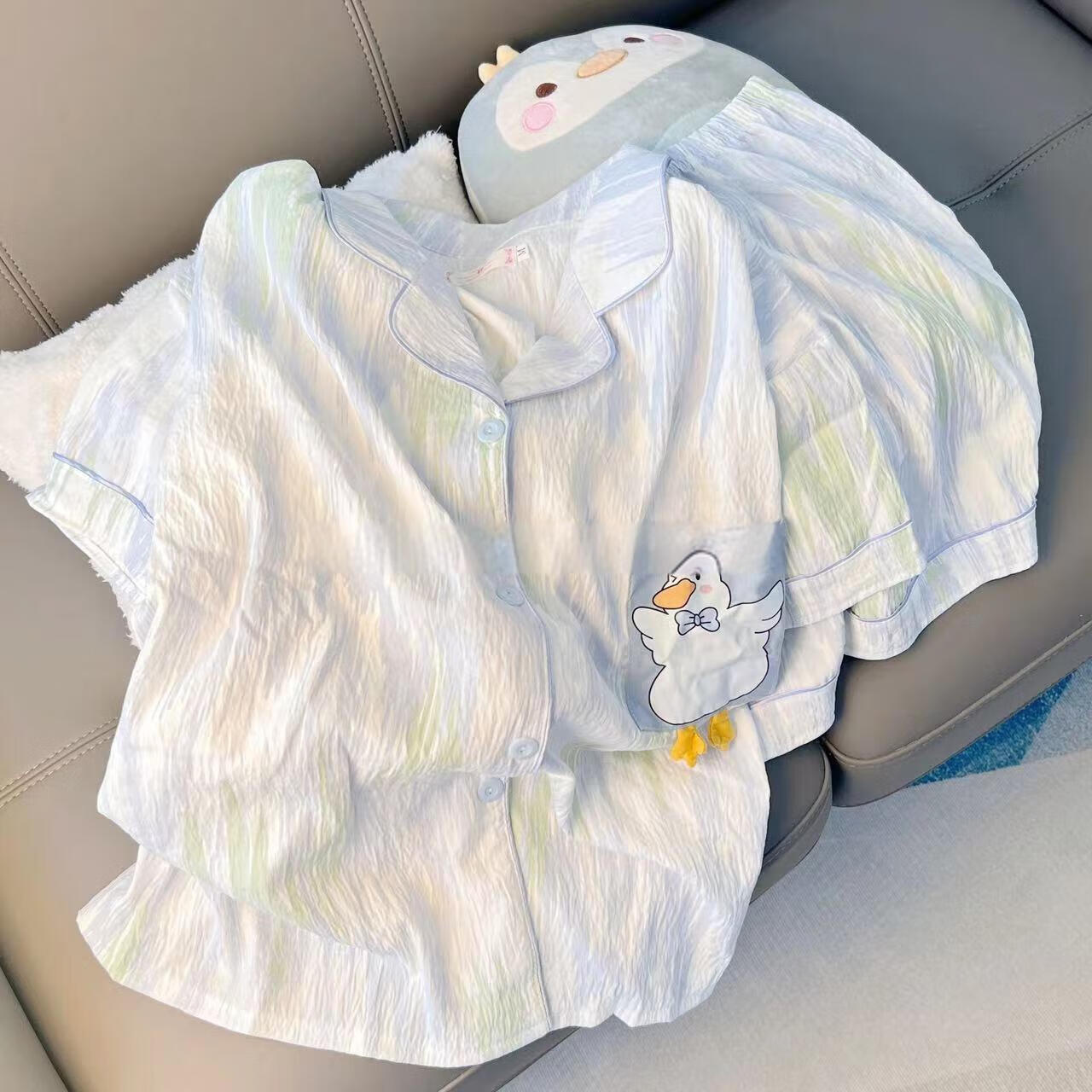 带胸垫睡衣女夏季云朵棉甜美可爱小白鸭可外穿家居服套装短袖短裤 小白鸭(带胸垫款) M(80-100斤)