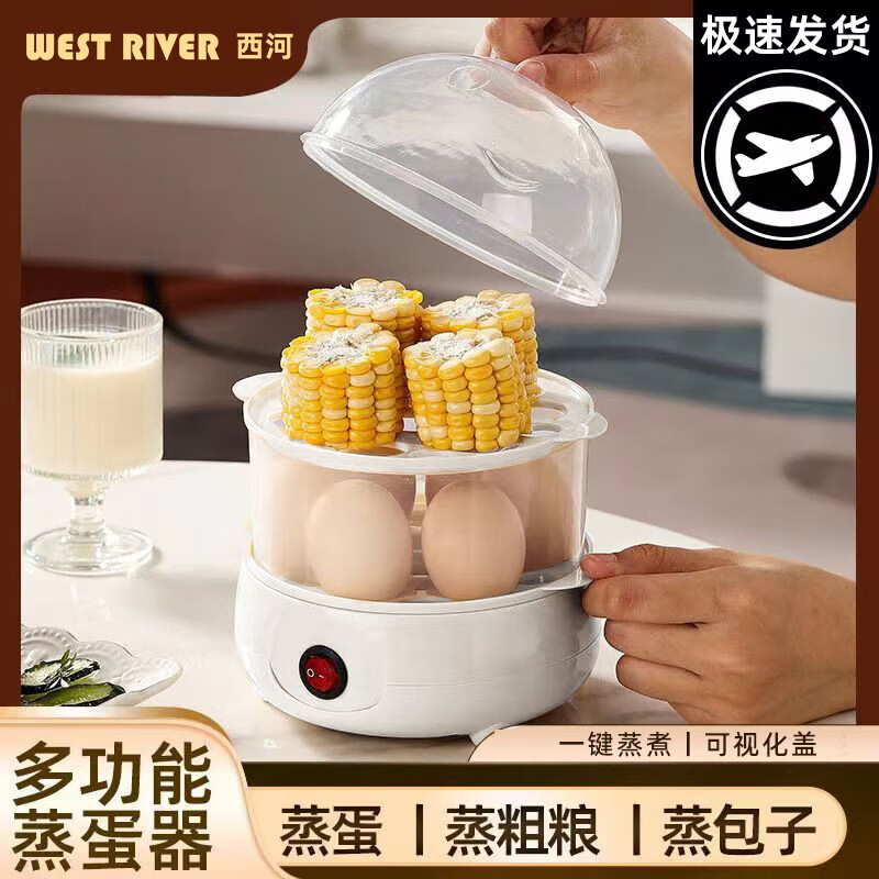 智能蒸蛋器多功能煮蛋器大容量蒸蛋羹神器早餐机全自动电蒸锅 单层 乳白色【蒸煮神器】超大单层蒸笼