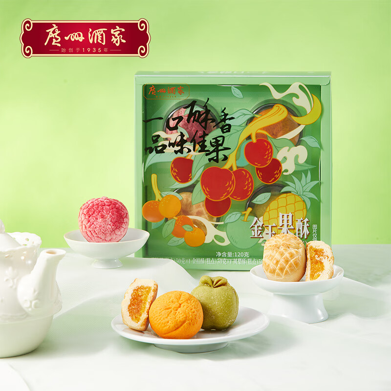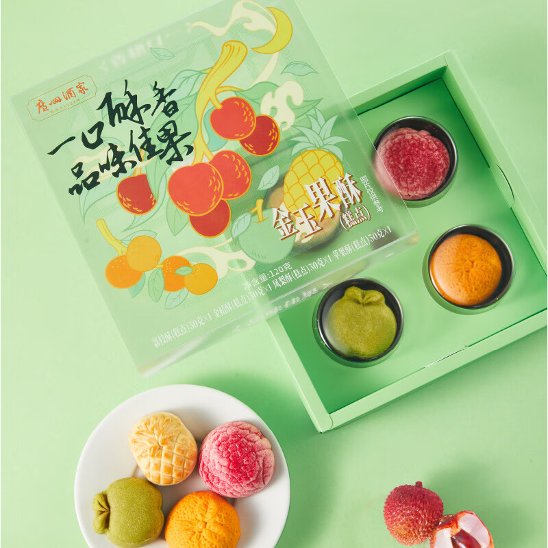 广州酒家 金玉果酥120g 4个装荔枝凤梨金桔3D水果造型岭南休闲零食伴手礼