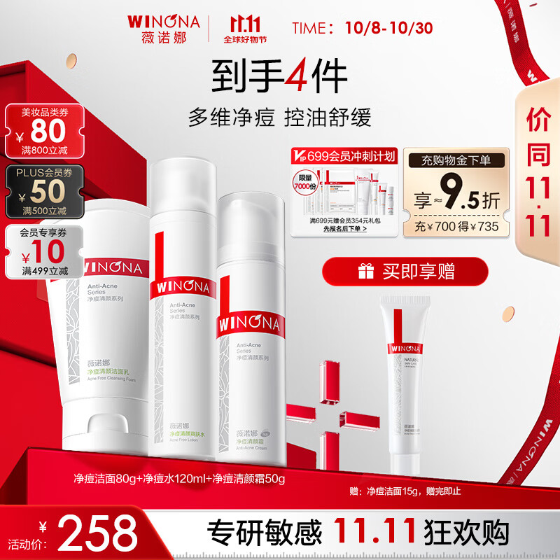 薇诺娜净痘清颜3件套洗面奶爽肤水面霜水乳保湿补水护肤品套装