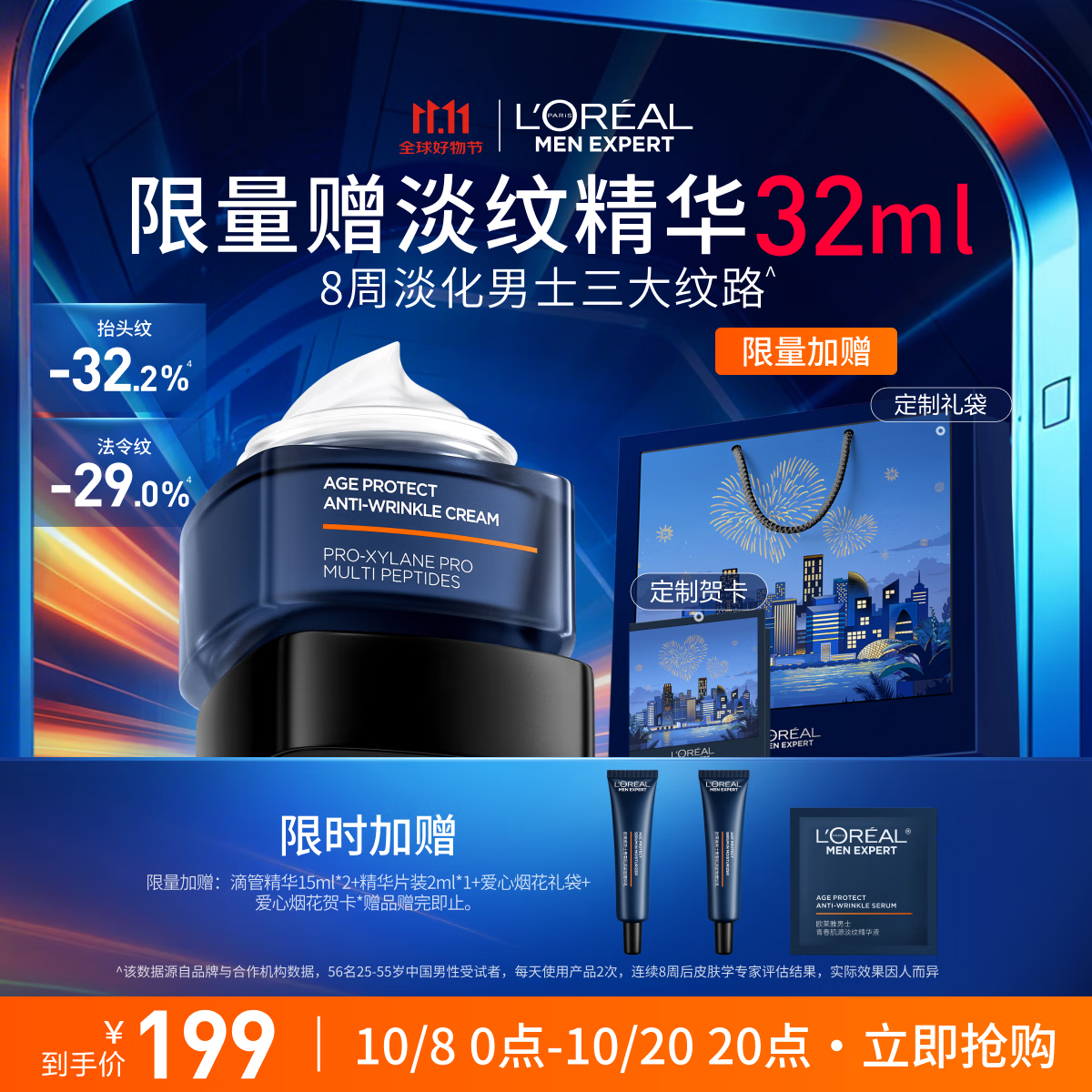 欧莱雅男士青春肌源淡纹霜50ml秋冬抗皱纹紧致补水保湿面霜护肤品礼物