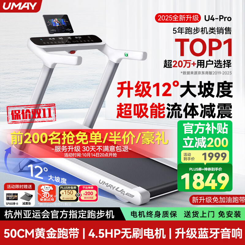 佑美U4Pro跑步机家庭用电动爬坡登山全折叠安静低音走步机健身房器材