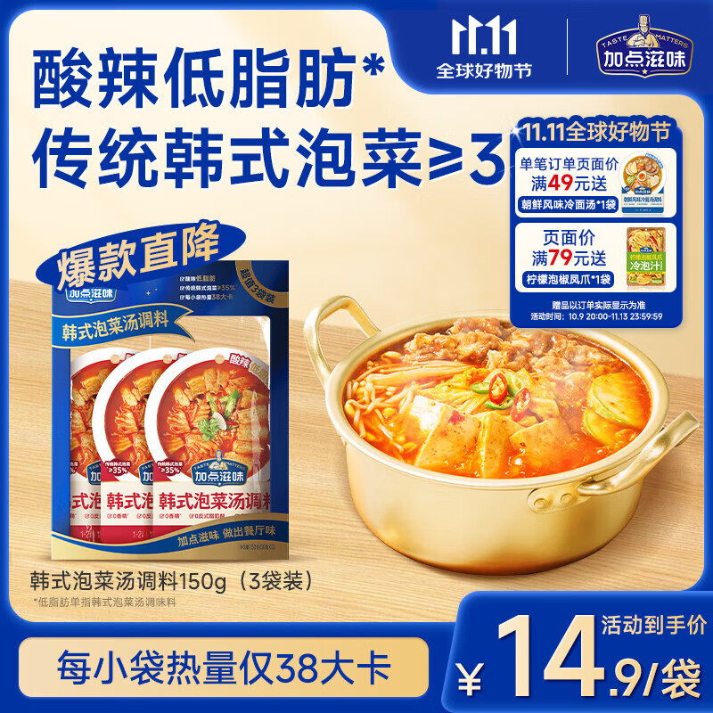 加点滋味韩式泡菜汤调料3袋装150g酸辣低脂水煮菜汤料包泡菜≥35%