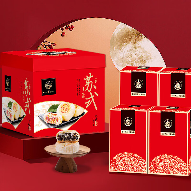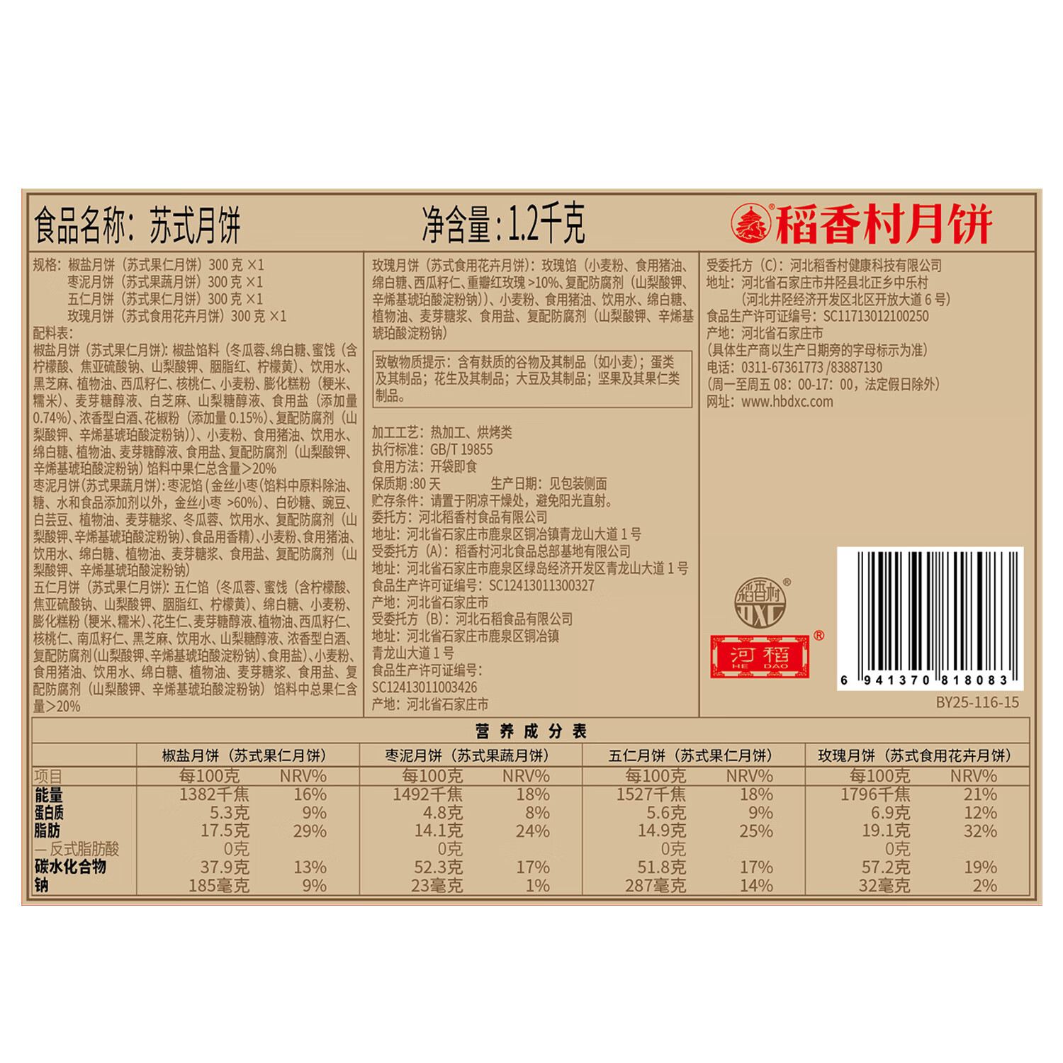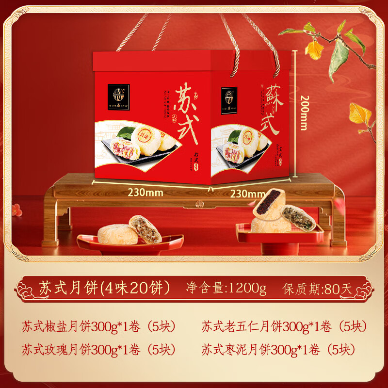 稻香村(DXC)中秋月饼礼盒苏式4味20饼含五仁枣泥椒盐玫瑰 酥皮 苏式月饼1200g